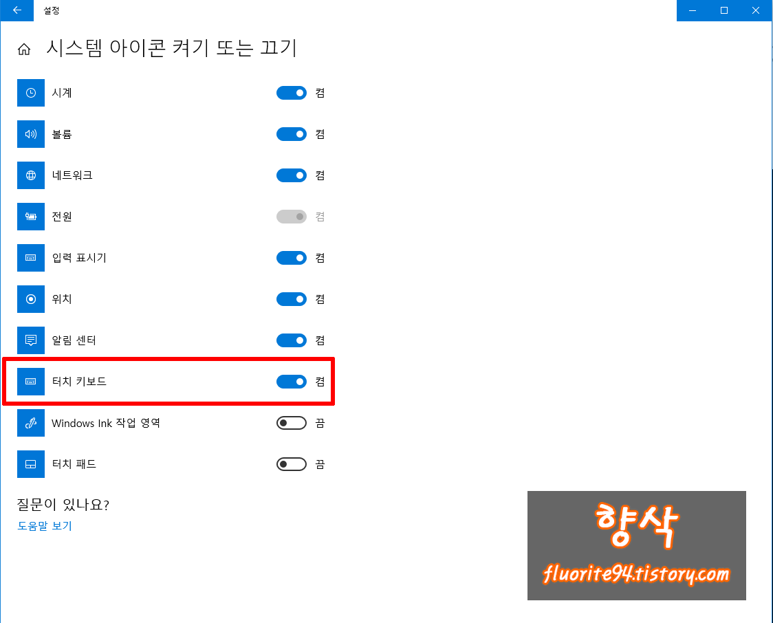 들어가여 터치 키보드 아이콘을 켜줍니다.
