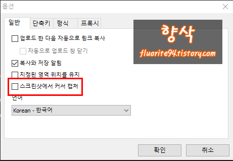 기본 캡쳐 프로그램이 아닌 다른 캡쳐 프로그램들은 옵션으로 마우스 커서를 포함시키는 옵션이 있는데