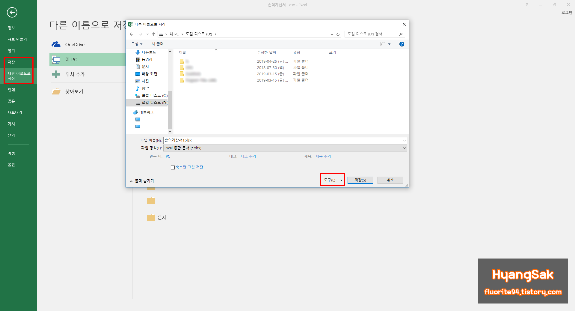 아래의 저장 버튼 왼편에 도구를 클릭합니다.