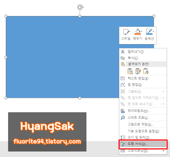 도형을 우클릭하여 도형 서식에 들어갑니다.