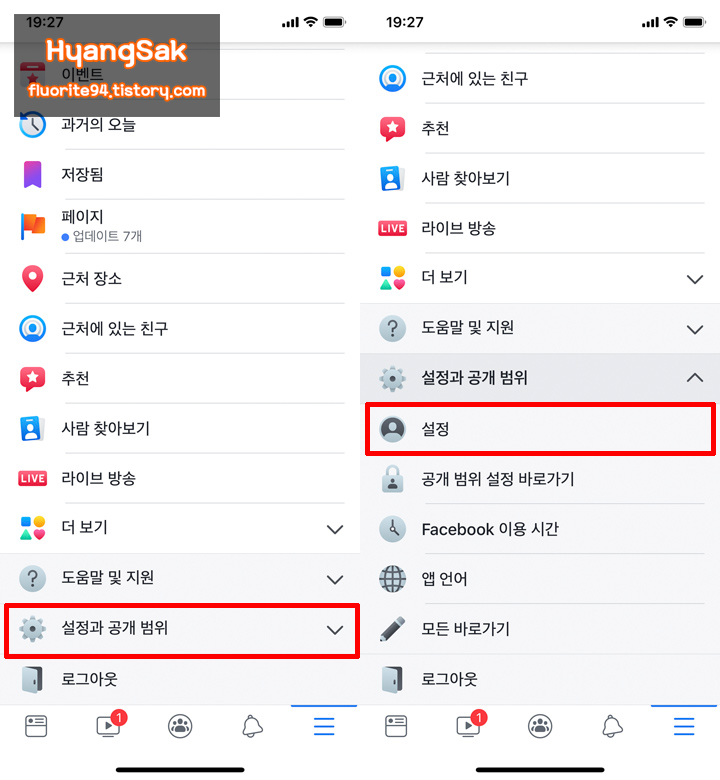 [설정과 공개 범위 - 설정]에 들어갑니다.
