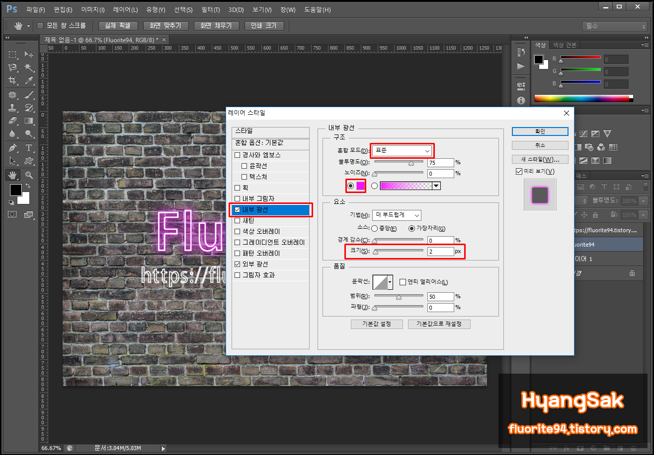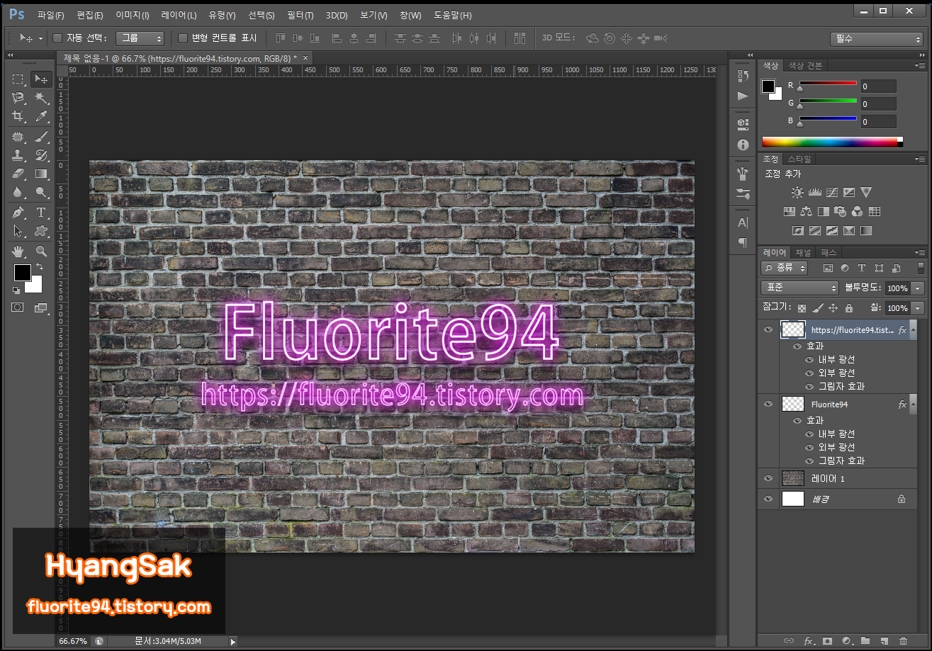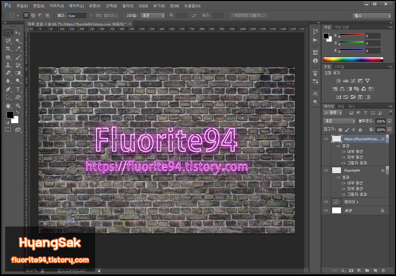 여기까지만 작업해도 그럴듯한 네온사인 효과가 만들어집니다.