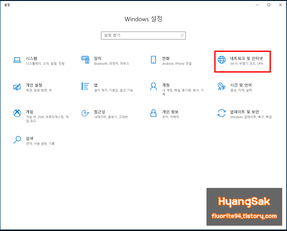 [네트워크 및 인터넷]을 클릭합니다.
