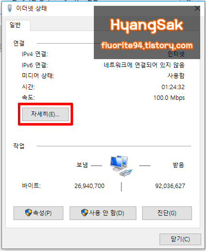 이더넷 상태 창에서 [자세히..]를 클릭합니다.