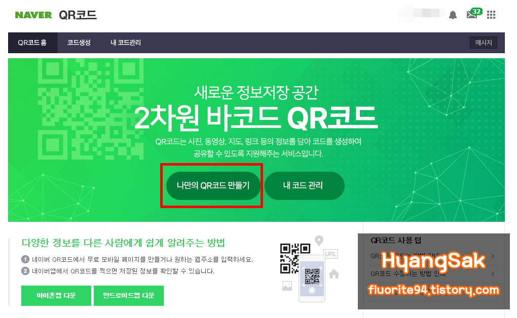네이버 QR코드(http://qr.naver.com)를 이용하여