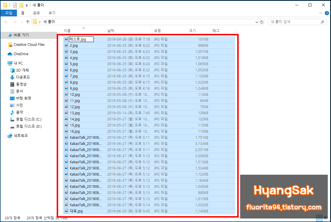 우선 이름을 변경할 이미지들을 한 곳에 모아 둡니다.