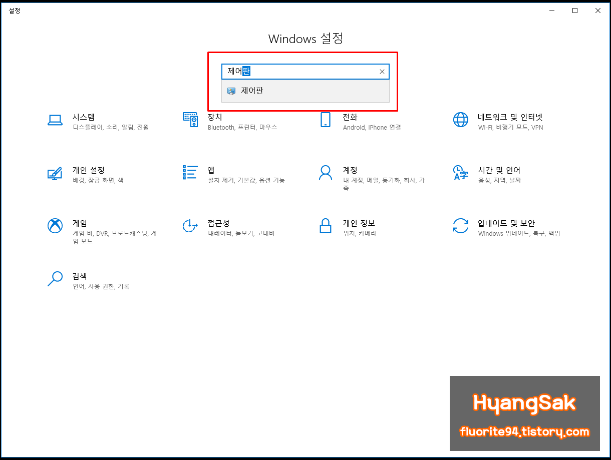 1. 윈도우10 [앱, 파일, 설정 및 웹 검색]을 통해 제어판 들어가는 방법