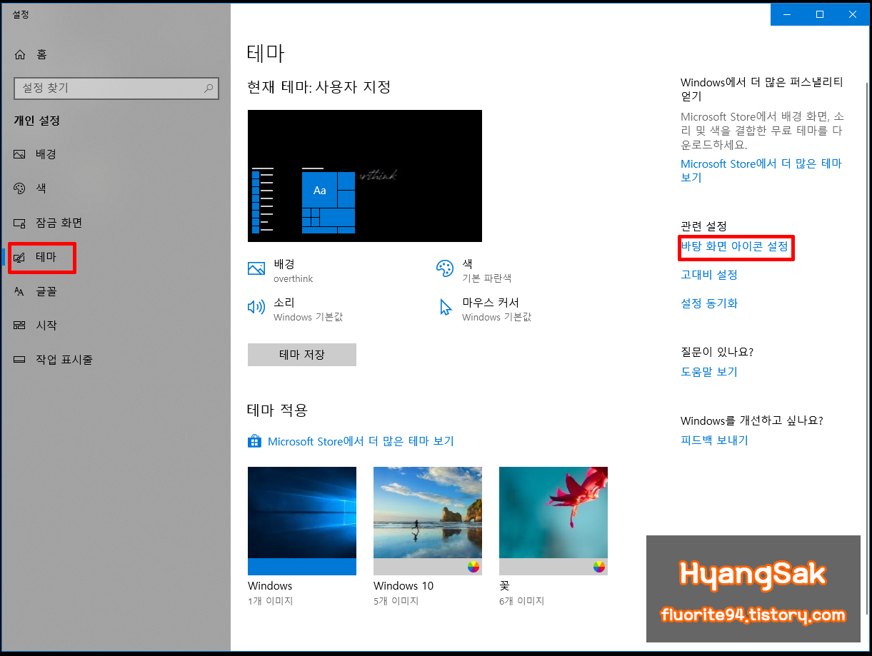 [테마 - 바탕 화면 아이콘 설정]에 들어갑니다.