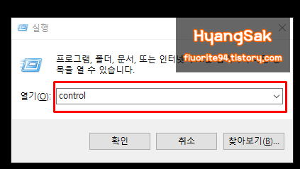실행창(Ctrl + R)을 열어 [control] 명령어를 입력하여 제어판에 들어갈 수 있습니다.