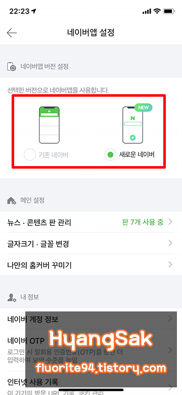 새로운 네이버를 선택하면 변경된 홈 화면으로 설정됩니다.