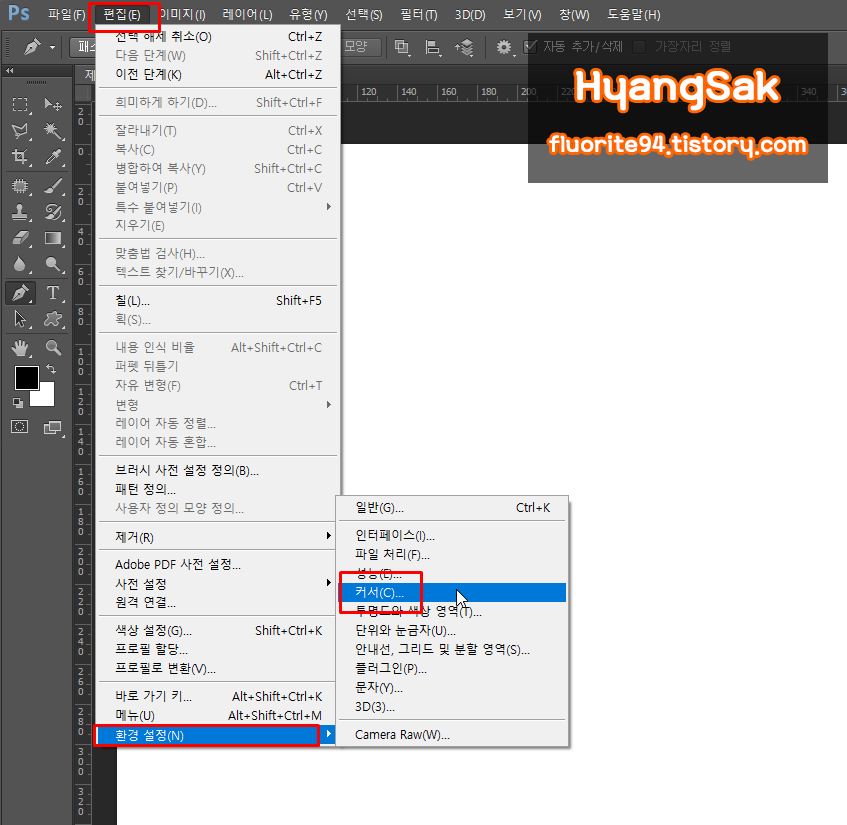 [편집 - 환경 설정 - 커서]에 들어갑니다.