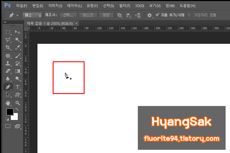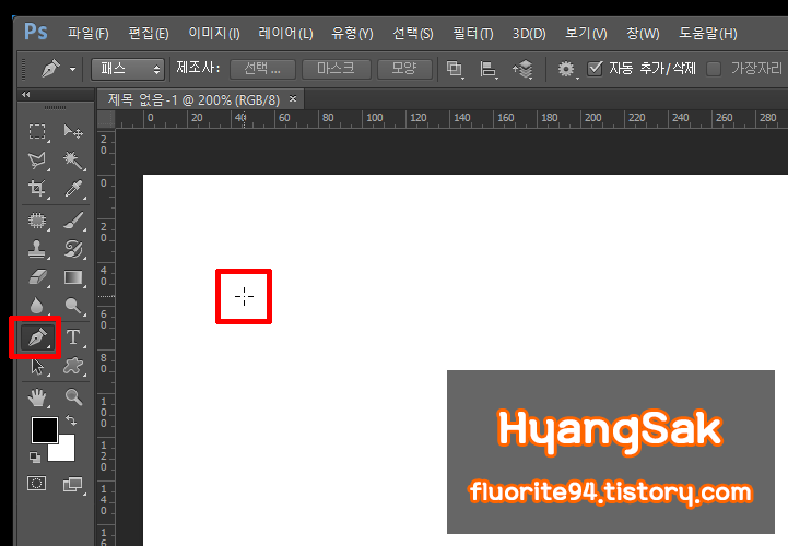 예를 들어 펜툴을 사용할 때에는 마우스 커서 모양이 펜툴로 바뀌게 되고,