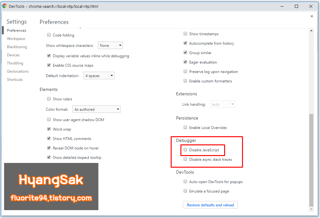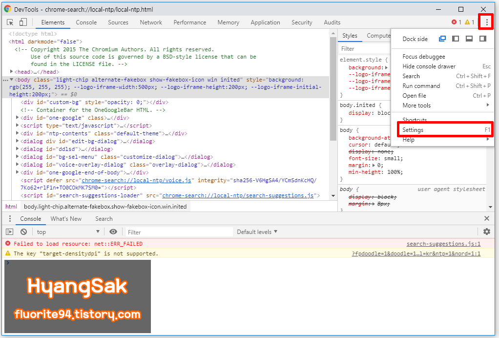 개발자 도구에서 F1을 클릭하여 Settings에 들어갑니다.