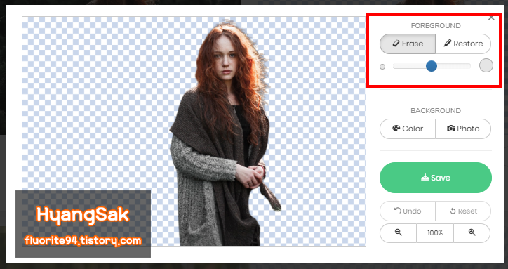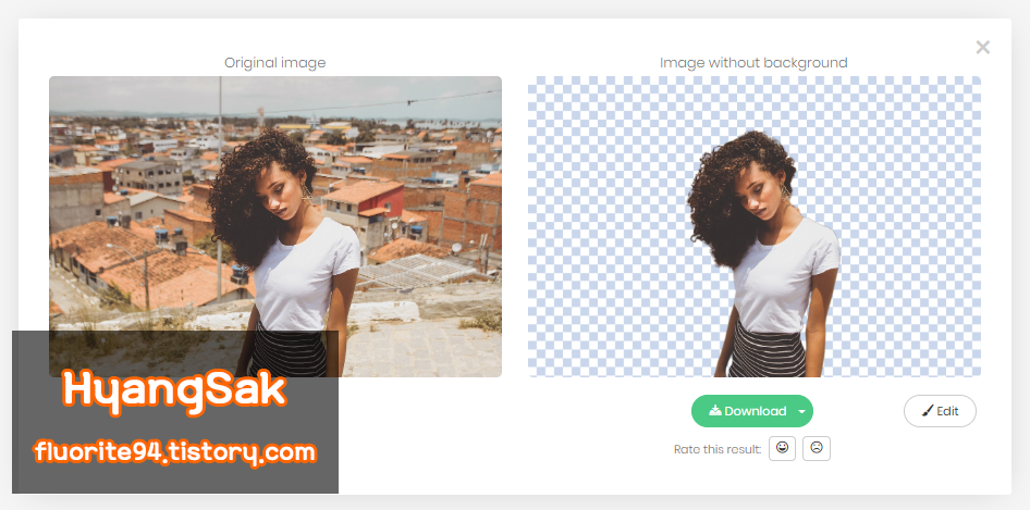 업로드하면 5초만에 위 사진처럼 배경이 지워진 것을 확인할 수 있습니다.