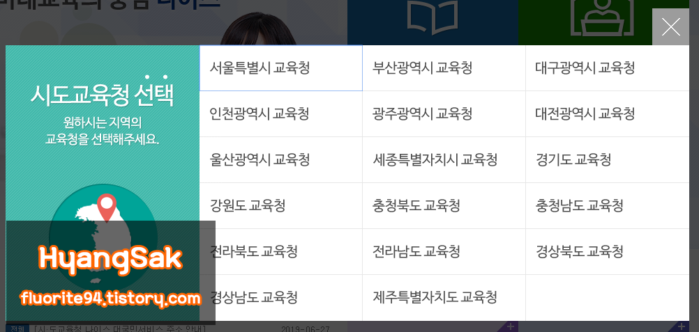 자신이 졸업한 학교가 위치한 교육청을 클릭합니다.