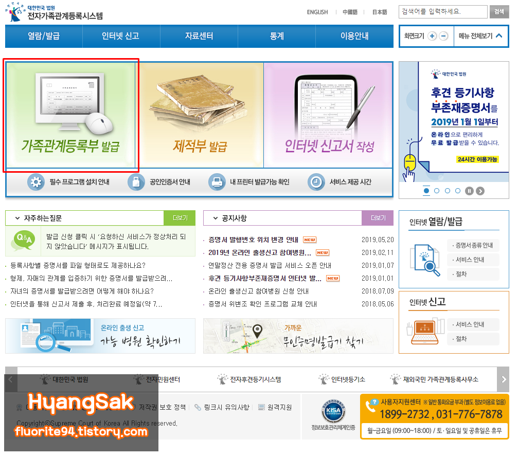 포털 사이트에서 대법원 전자가족관계등록시스템을 검색하여 접속하시거나