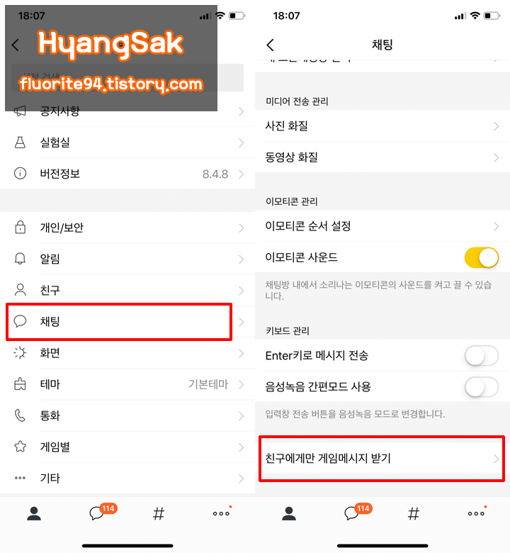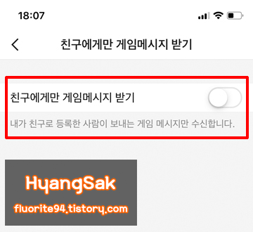 [채팅 - 친구에게만 게임 메시지 받기]에 들어가면 옵션을 변경할 수 있습니다.