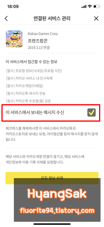 게임에 들어가면 [이 서비스에서 보내는 메시지 수신]이라는 체크박스를