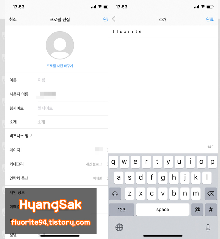프로필 소개로 들어가 소개 문구를 변경하거나