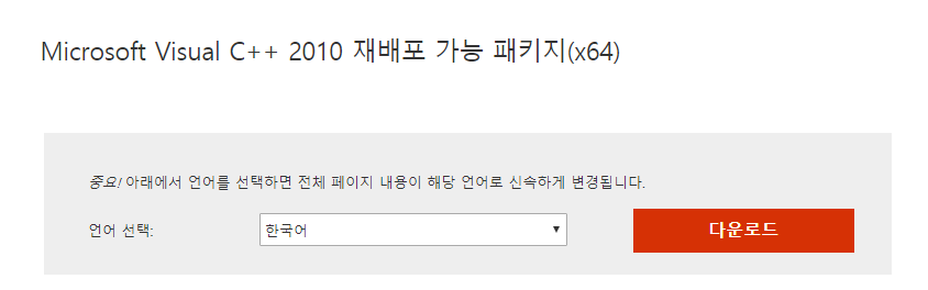 Microsoft Visual C++ 2010 재배포 가능 패키지(x64)