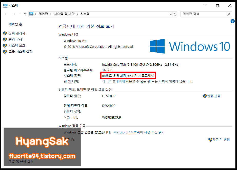 먼저 윈도우10 사양을 알아야 합니다.