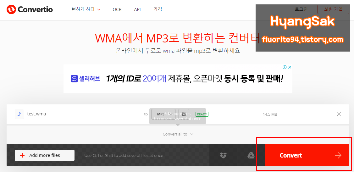우선 위 링크를 클릭하여 Convertio사이트에 들어갑니다.