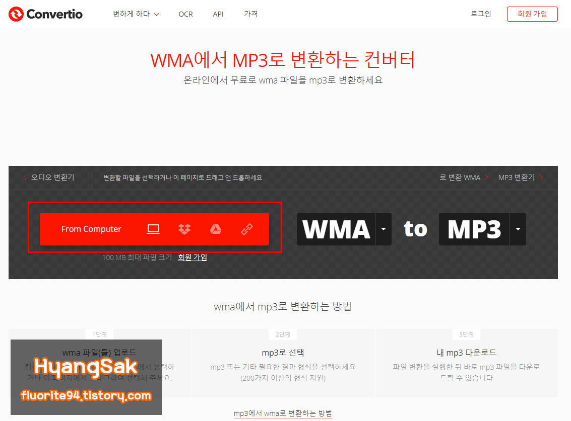 Convertio사이트를 이용하여 WMA형식의 파일을 MP3로 변환하는 방법입니다.