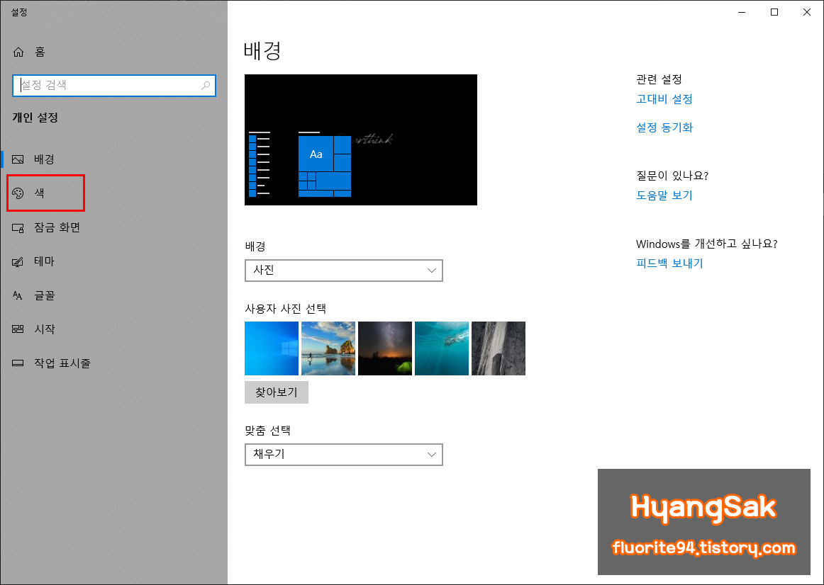 윈도우10에서 다크 모드를 설정하는 방법입니다.