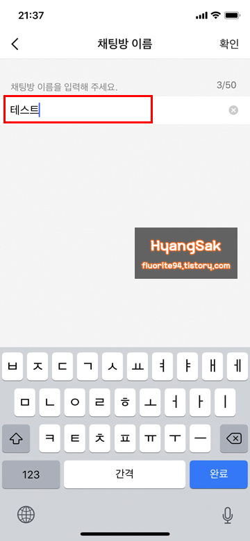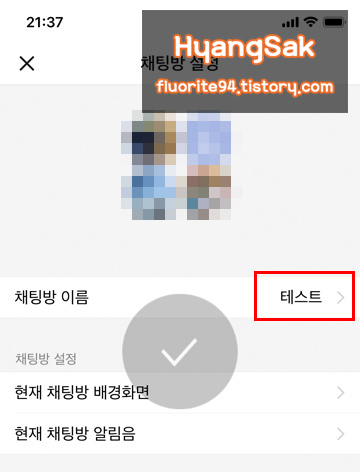 기존에 채팅방에 포함된 친구 이름이 나열되었지만, 테스트로 변경된 것을 확인할 수 있습니다.