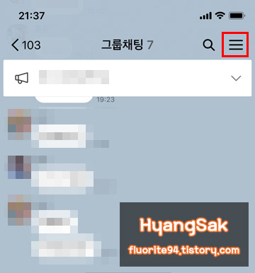 우선 변경하고 싶은 단톡방으로 들어가 우측 상단에 더보기를 클릭합니다.