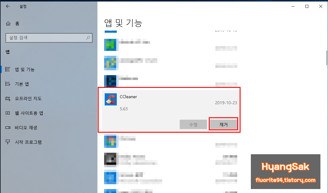 앱 및 기능이라는 화면이 나타나며 제거를 원하는 프로그램을 찾아 제거를 클릭하시면 됩니다.