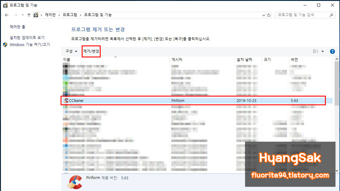 제거를 원하는 프로그램을 찾아 클릭 후 제거 메뉴를 클릭하시면 됩니다.