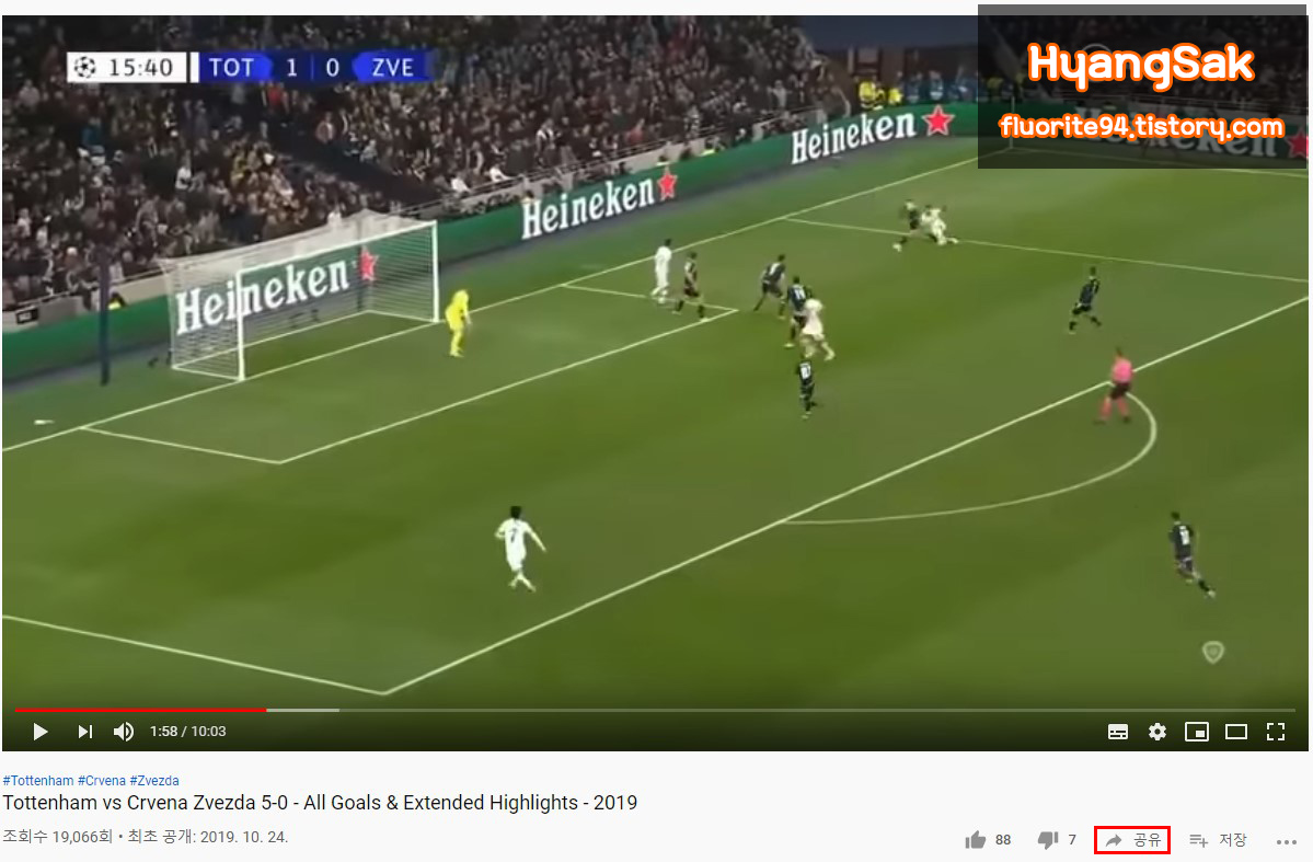 만약 손흥민 선수가 골을 넣은 장면을 다른 이에게 보여주고싶어 공유를 한다면 "몇 분 몇 초부터 보세요."라고 얘기를 건네며 공유를 해야 합니다.처음에 라인업이 나오는 부분을 스킵하고 시작을 손흥민 선수가 골을 넣은 장면부터 설정해보도록 하겠습니다.