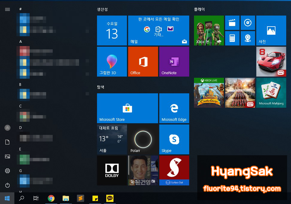 윈도우10에서 시작 메뉴에 들어가면 설치된 앱이 나타나는 영역 상단에 자주 사용되는 앱이 나타납니다.