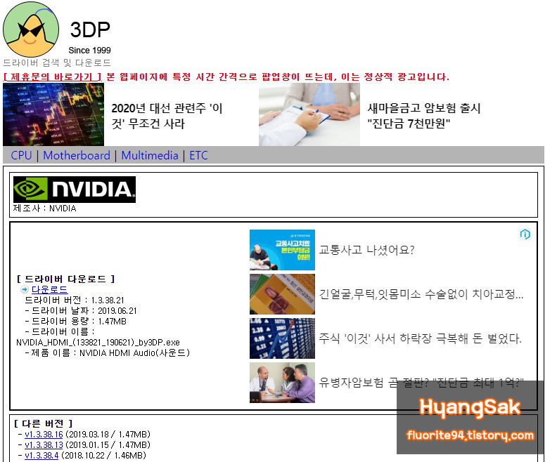 포맷을 하거나 새로 운영체제를 설치한 다음 3DP 프로그램을 이용하면 쉽고 간단하게 드라이버를 설치할 수 있습니다.