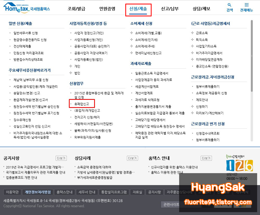 하지만 폐업 신고를 할 때에 공인인증서가 필요하니 인증서를 준비하시길 바랍니다.