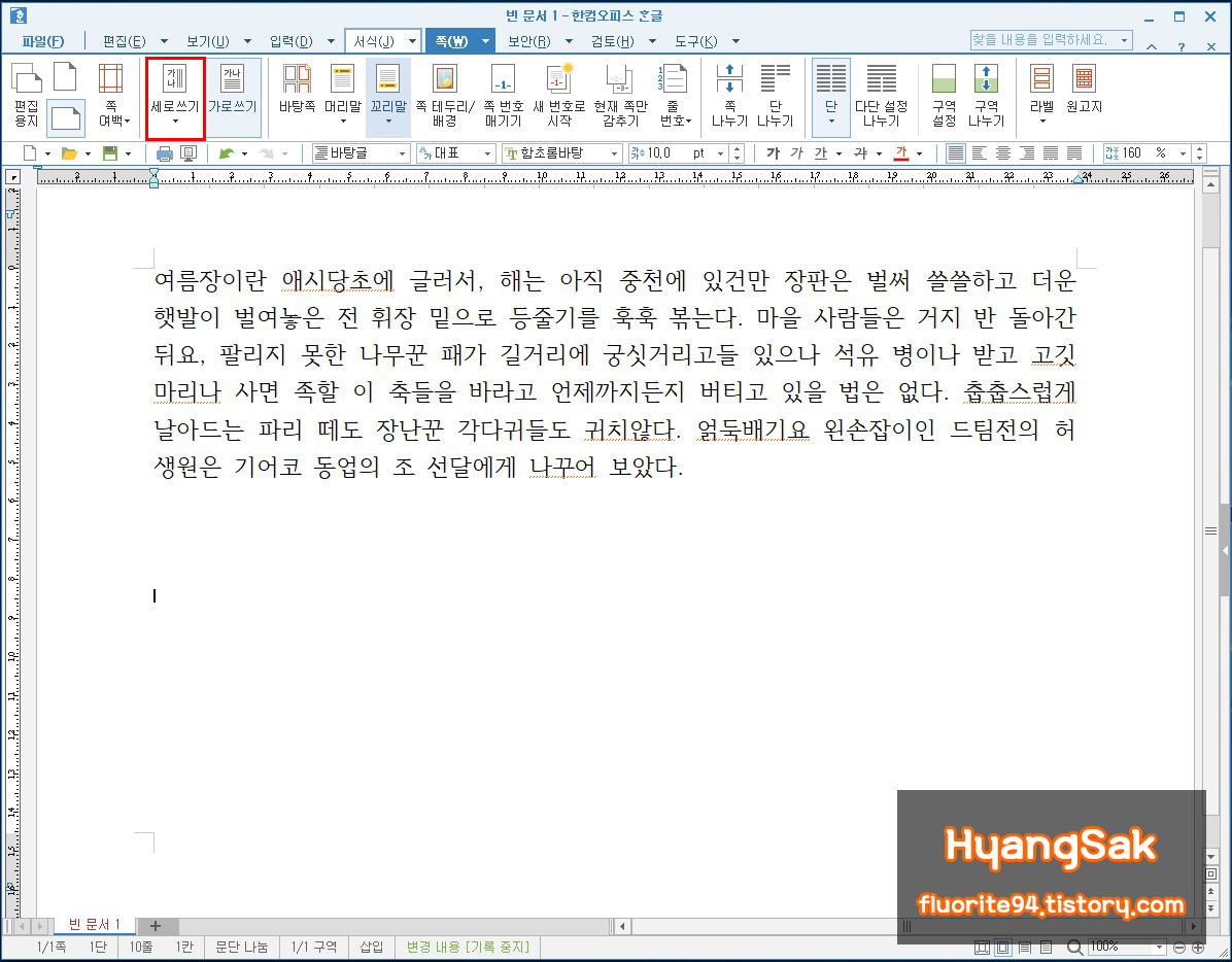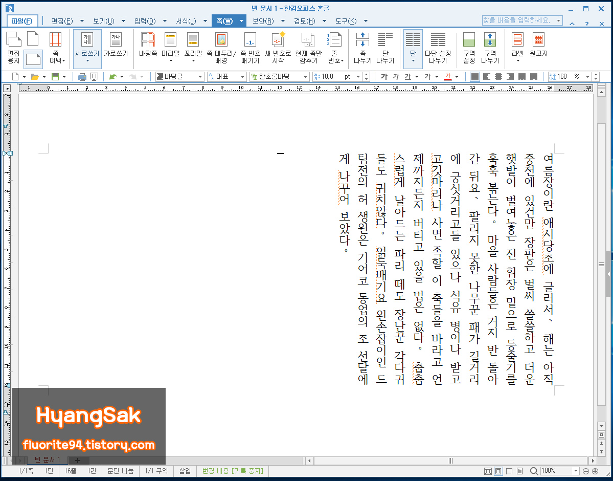 이렇게 세로 쓰기를 적용하면 위 사진과 같이 본문이 세로 쓰기 적용된 것을 확인할 수 있습니다.