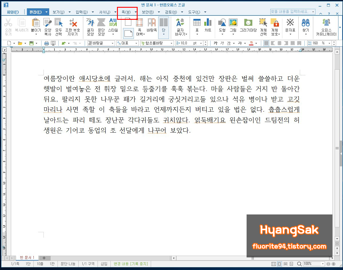 이런 경우 한글의 설정을 변경하면 간단하게 글을 세로로 쓸 수 있습니다.