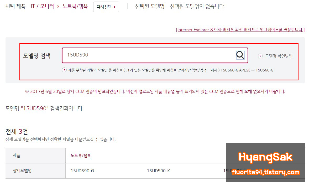 여기서 모델명을 검색합니다.