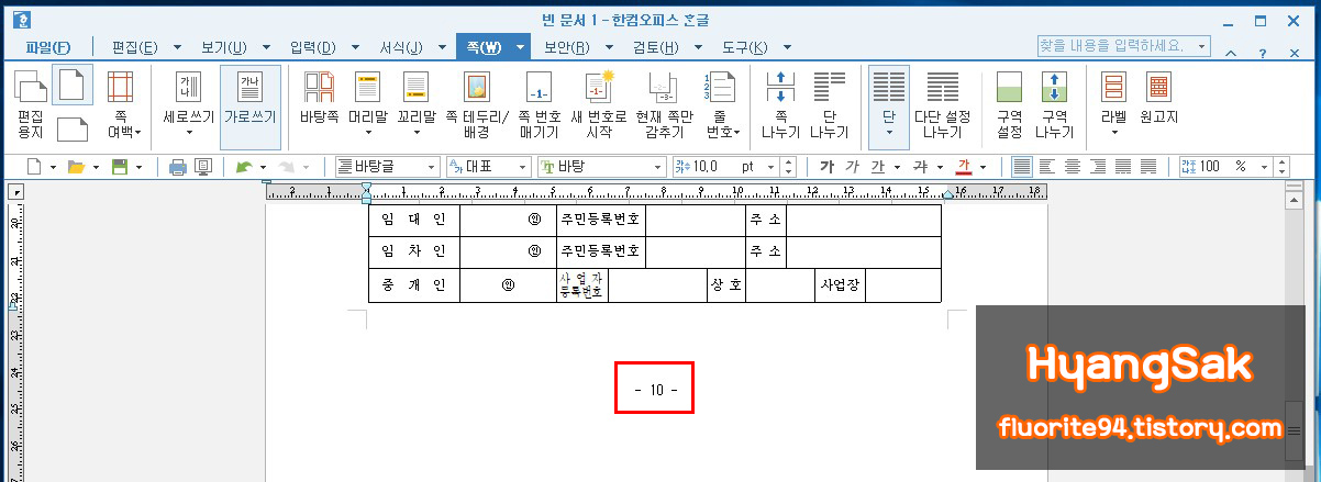-2-로 설정된 쪽 번호를 10으로 변경하면 현재 페이지 쪽 번호가 10으로 변경된 것을 확인할 수 있습니다.