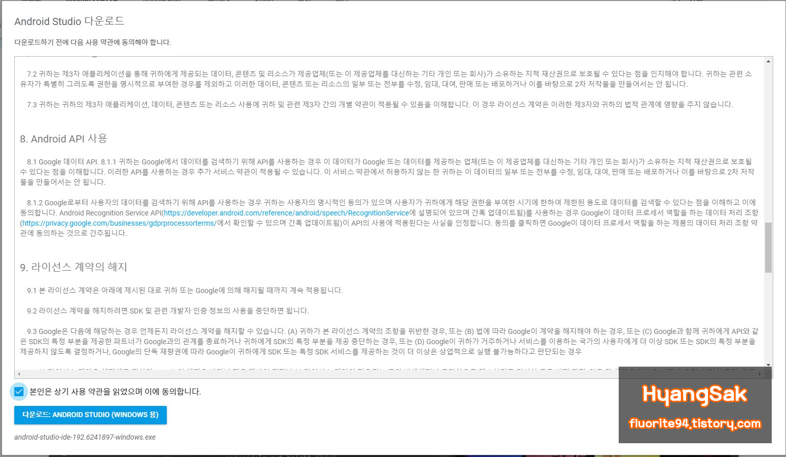 사용 약관에 동의한 다음 다운로드를 클릭합니다.