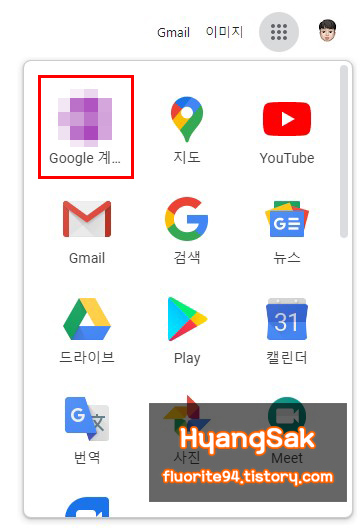 크롬 브라우저에서 우측 상단에 더보기를 클릭하여 Google 계정 화면에 들어갑니다.