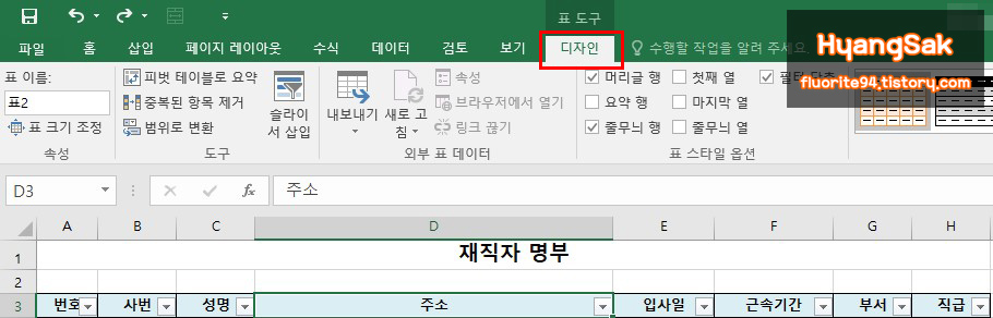 상단 탭에 [디자인] 영역이 있다면 아래 방법을 따라 하시면 됩니다.