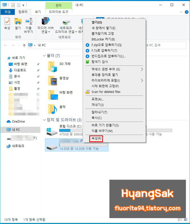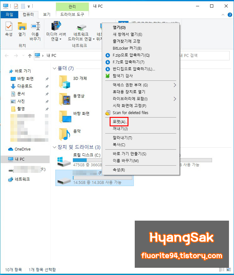 USB 드라이브를 우클릭하여 포맷에 들어갑니다.