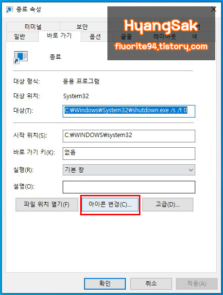 아이콘까지 변경하면 원하는 위치(작업표시줄, 바탕화면 등)에 두고 사용하시면 됩니다.