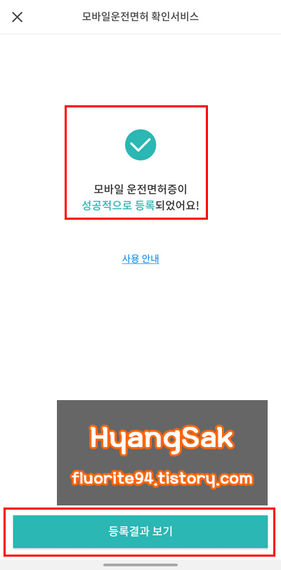 등록이 완료되면 [등록 결과 보기]를 클릭하여 모바일 운전면허증을 확인하시면 됩니다.