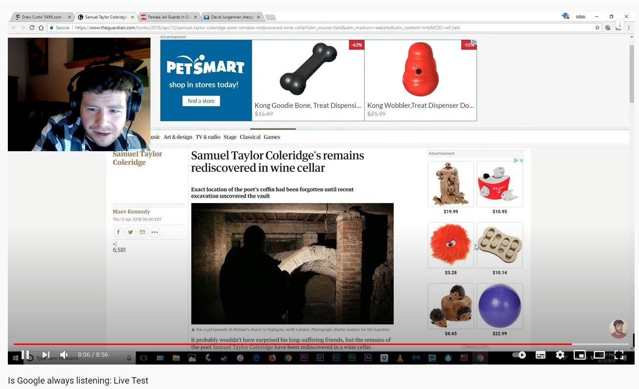 이 유튜버는 구글 크롬 브라우저가 사용자의 음성을 실시간으로 수집하여 마케팅 정보로 사용한다는 가정을 한 채로 실험을 했는데요.