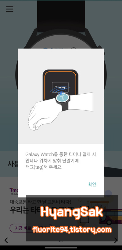 워치에서 NFC 설정을 활성화시킨 다음 티머니를 사용하시면 됩니다.