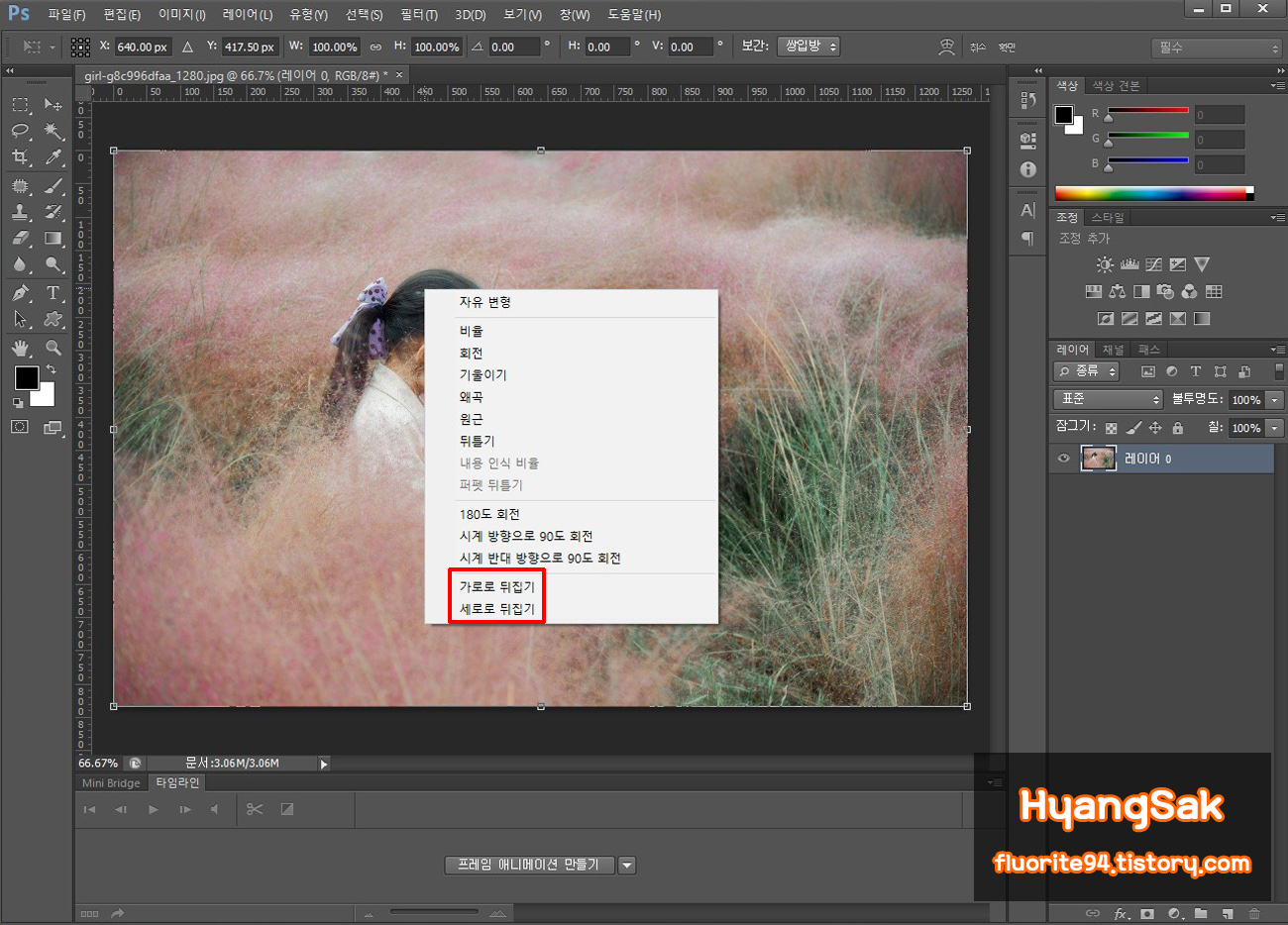 포토샵 작업을 하다 보면 이미지를 좌우 반전시키거나 상하 반전을 해야 할 경우가 있죠.