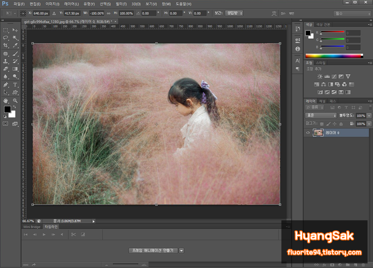 이렇게 이미지가 원하는 방향으로 반전이 되면 엔터를 눌러 자유 변형 상태에서 빠져나오시면 됩니다.